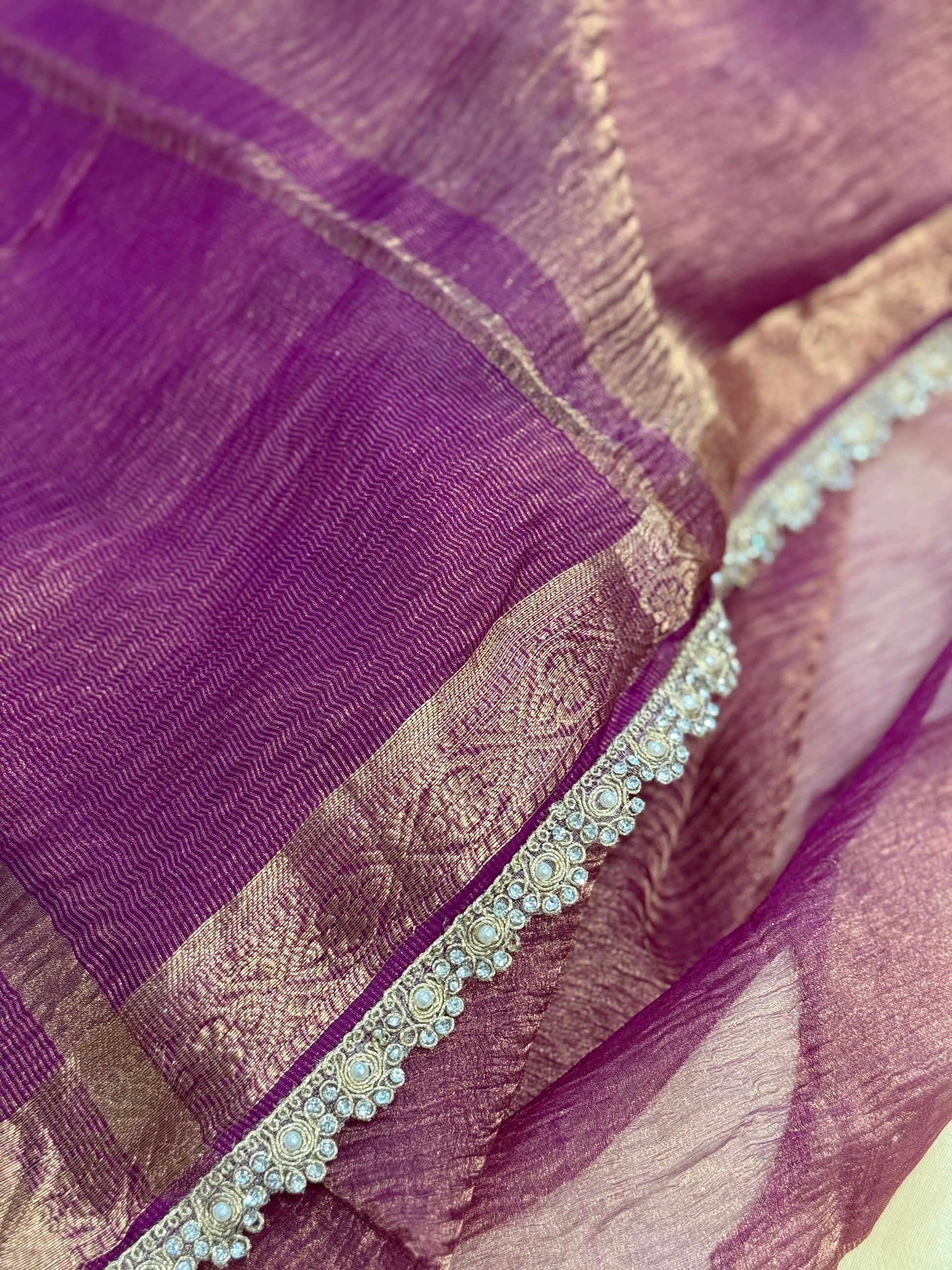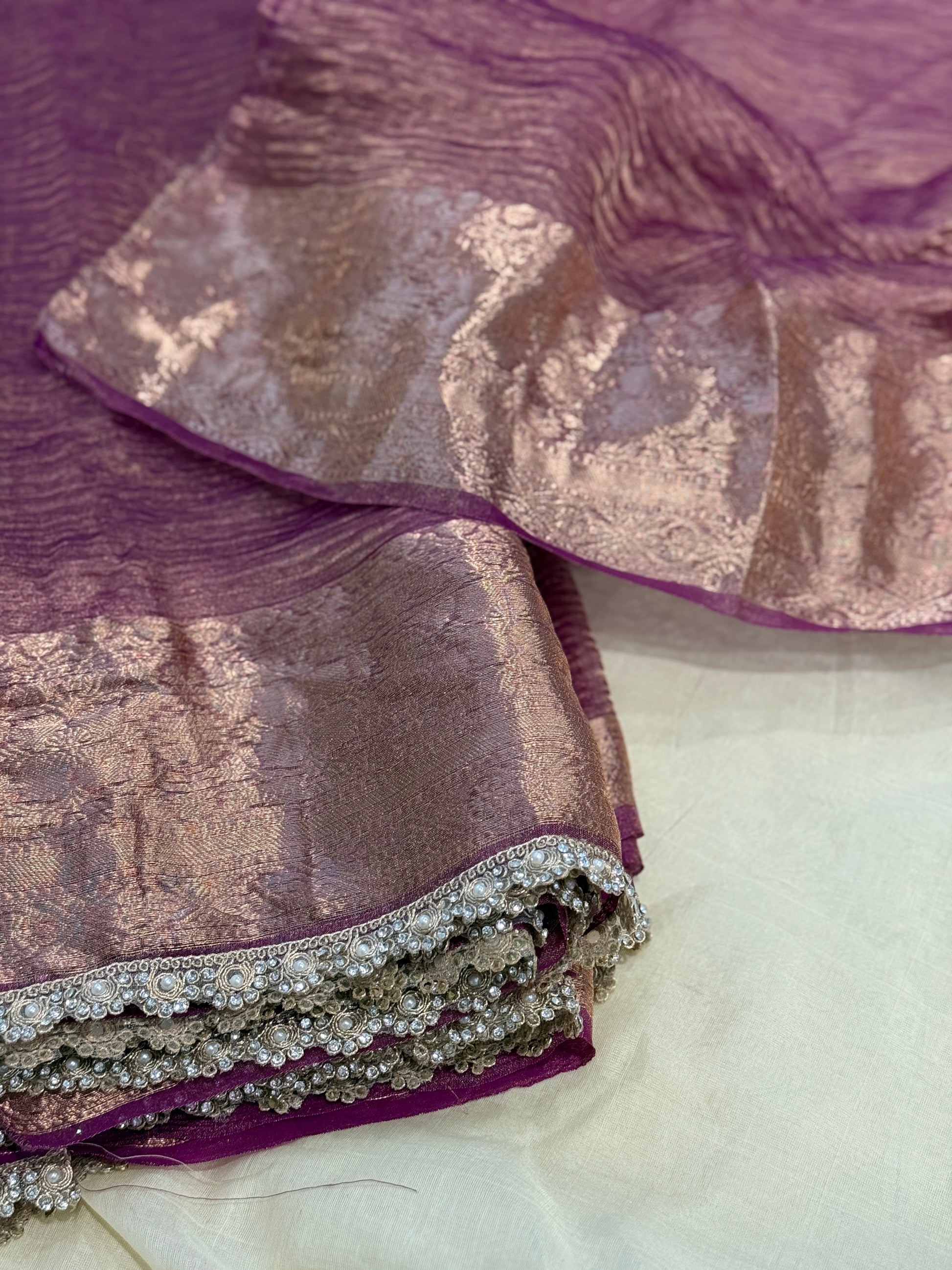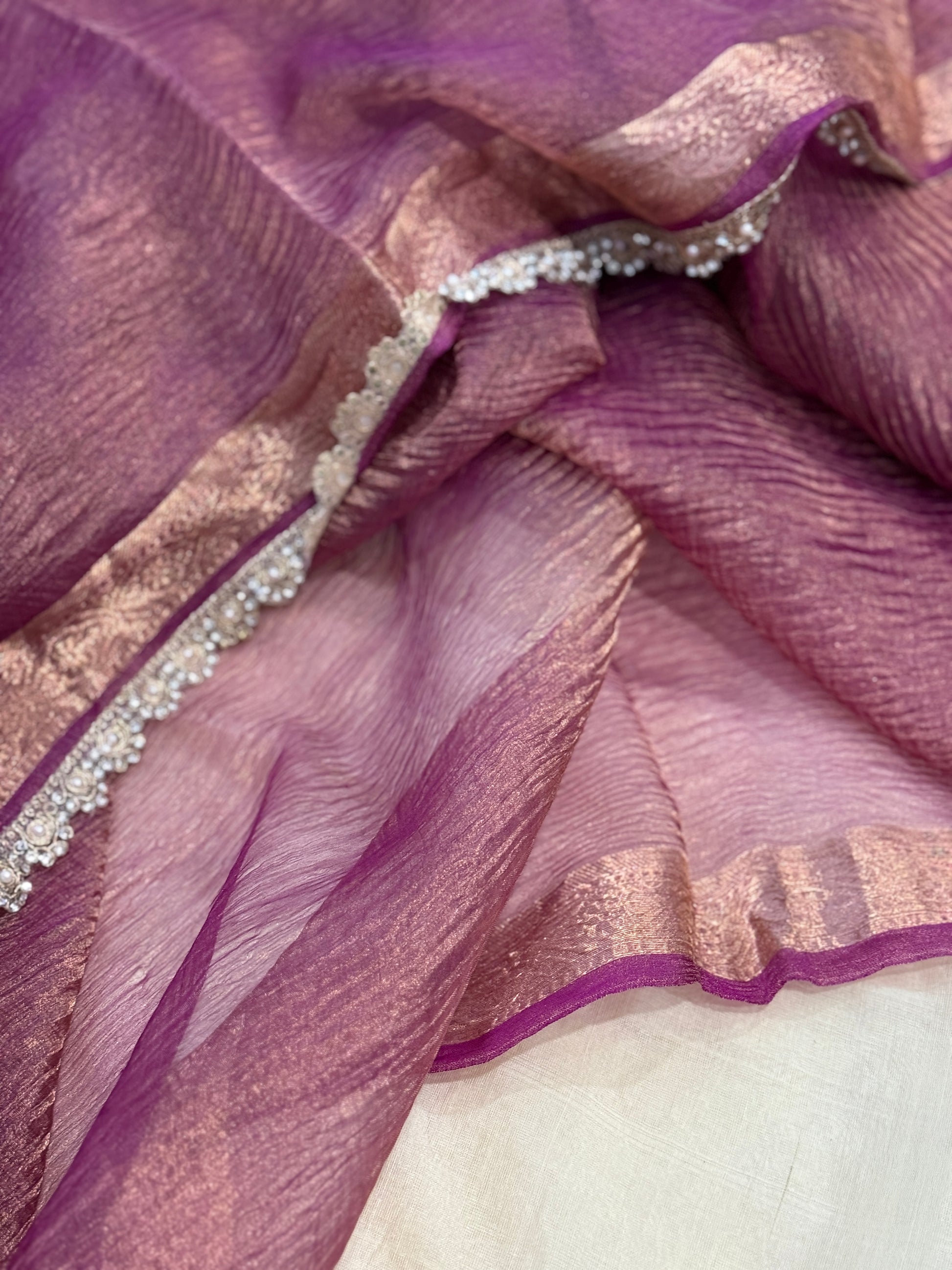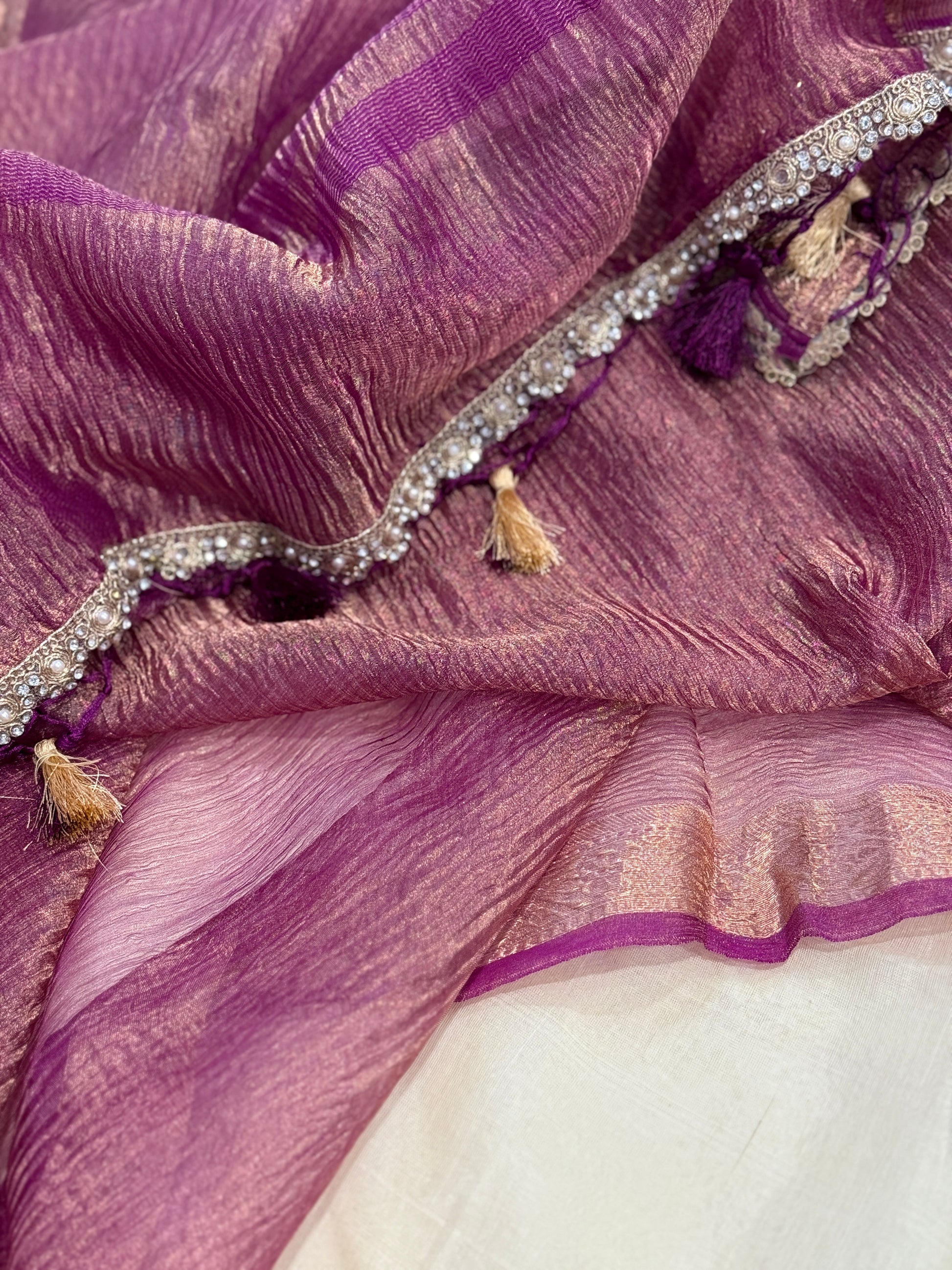 Handwoven Benarasi Tissue Crushed Silk Saris, comes in Prettiest Purple Shade,comes with an running Blouse Fabric,